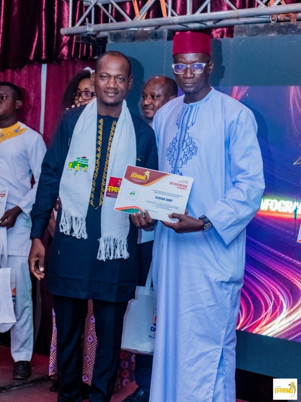 The president of the Sakhal Ligeyy association, Omar Diop, received an honorary award on December 27th in Ouagadougou, during the Ouagadougou Festival of Prizes and Trades (FEPRIMO). This distinction recognizes the association's commitment to transmitting knowledge and skills, as well as its work in promoting training and professional integration for underprivileged children.