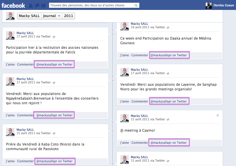 Eh Oui, il a fallu à Macky Sall exactement 323 jours de présence sur Facebook pour rassembler 30.000 sympathisants avec qui il partage son quotidien depuis le 03 Janvier 2011.