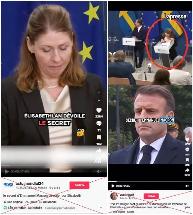 "Flash info : tous les français sont en choc [sic] en ce moment après la révélation d'Elisabeth [sic]": c'est ansi que démarre une vidéo à la syntaxe approximative, partagée des milliers de fois sur TikTok, et qui a pour objet un prétendu "secret d'Emmanuel Macron" qu'aurait révélé la ministre suédoise "lors d'une interview".