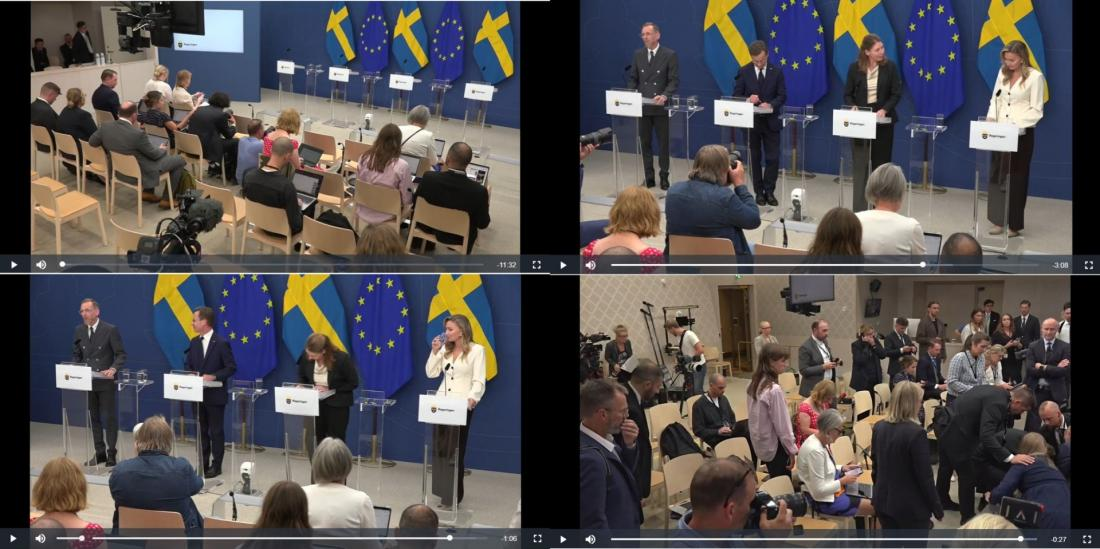 Mais le visionnage des images, tournées lors de la conférence de presse et transmises à l'AFP par les autorités suédoises, montre qu'Elisabet Lann n'a jamais tenu ces propos.