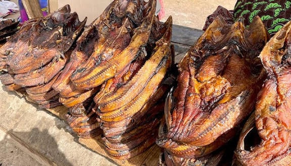 Plus loin, dans le hangar de fumage, l’air devient plus dense. La chaleur est intense et la fumée pique les yeux des visiteurs non habitués. Autour des fours traditionnels appelés "banda", des femmes s’activent avec une maîtrise impressionnante. Sur les grillages de fumage, une seule espèce domine : le konkoé.