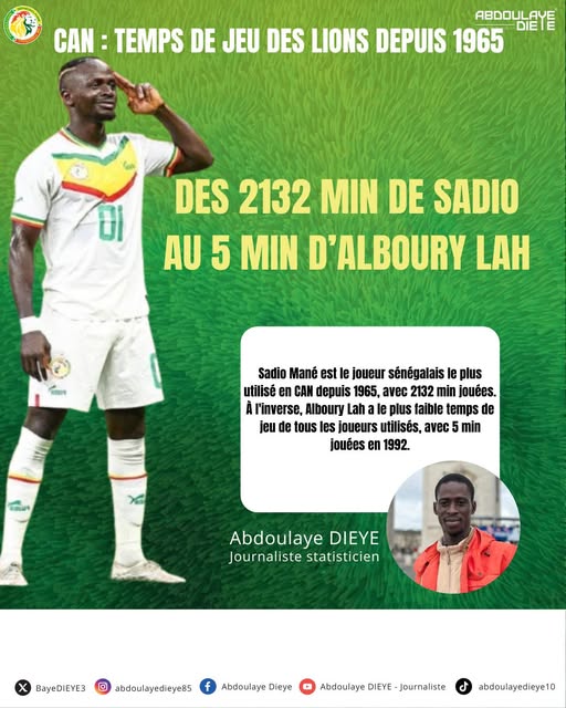 CAN - Temps de jeu des Lions depuis 1965 : Des 2132 min de Sadio au 5 min d’Alboury Lah (par Abdoulaye DIÈYE, statisticien)
