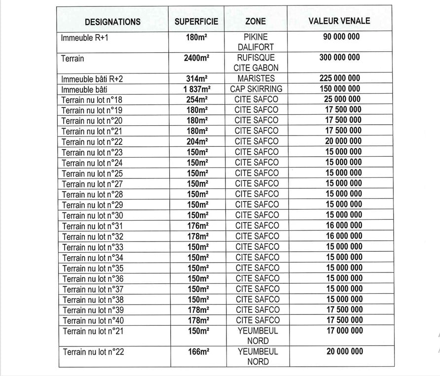 La Banque des Institutions Mutualistes d'Afrique de l'Ouest (BIMAO) procède à la cession des biens immobiliers ci-dessous :