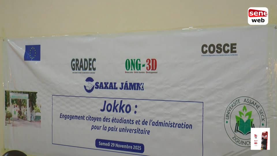 Le Collectif des organisations de la société civile pour les élections (COSCE) sensibilise pour la stabilité et la paix au sein de l’Université Assane Seck de Ziguinchor. Une initiative menée à travers le programme dénommé Saxal Jāmm, avec comme thématique référence " Jokko citoyen pour une stabilité et la paix en milieu universitaire ".