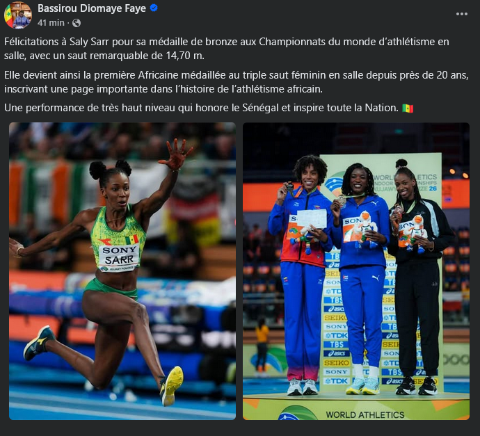 Ce sacre n'est pas seulement une victoire personnelle, c'est un jalon pour l'athlétisme africain. Comme l'a souligné le président de la République, Bassirou Diomaye Faye, sur ses réseaux sociaux.