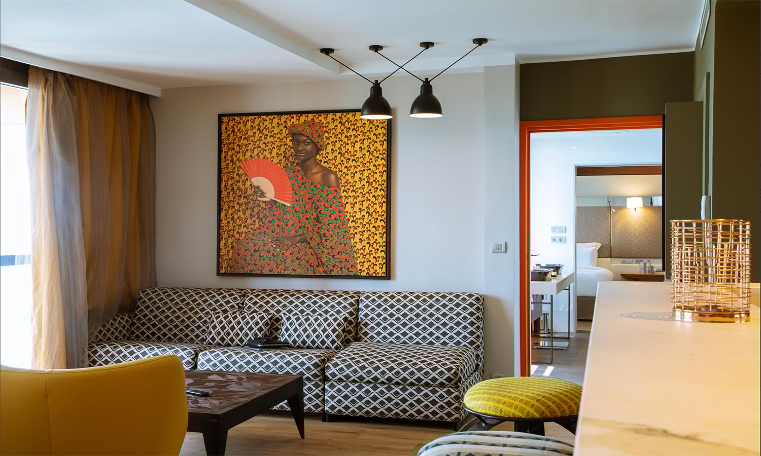 Ce qui pourrait frapper le client de prime abord, c’est l’attachement du Pullman à la culture. Un fait que confirme son responsable qui indique que l’art occupe une place essentielle dans l’ADN de la marque : « Pullman a toujours été un précurseur qui mettait en avant les artistes des pays dans lesquels il se trouvait ». L’hôtel expose des œuvres, réaménage ses espaces selon les cycles artistiques et prépare une nouvelle exposition consacrée à Baba Ly, membre du Village des Arts.