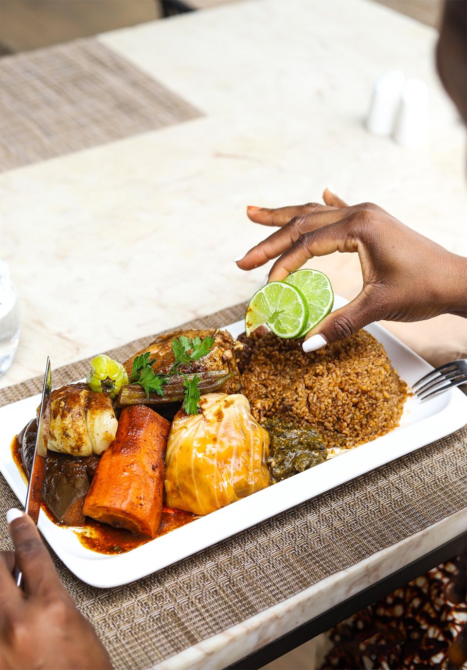 Concernant la gastronomie, l’hôtel cherche à satisfaire tous les profils. Le directeur général résume la démarche : « On peut répondre à l’ensemble des attentes des gens ». Il cite les régimes vegan, végétariens, hypocaloriques ou traditionnels. Dans cette optique, les jus locaux tiennent une place importante sur la carte. Il insiste aussi sur la contribution de la cheffe Aïcha : « Elle amène sa vision. C’est une femme sénégalaise qui amène sa façon de travailler ».