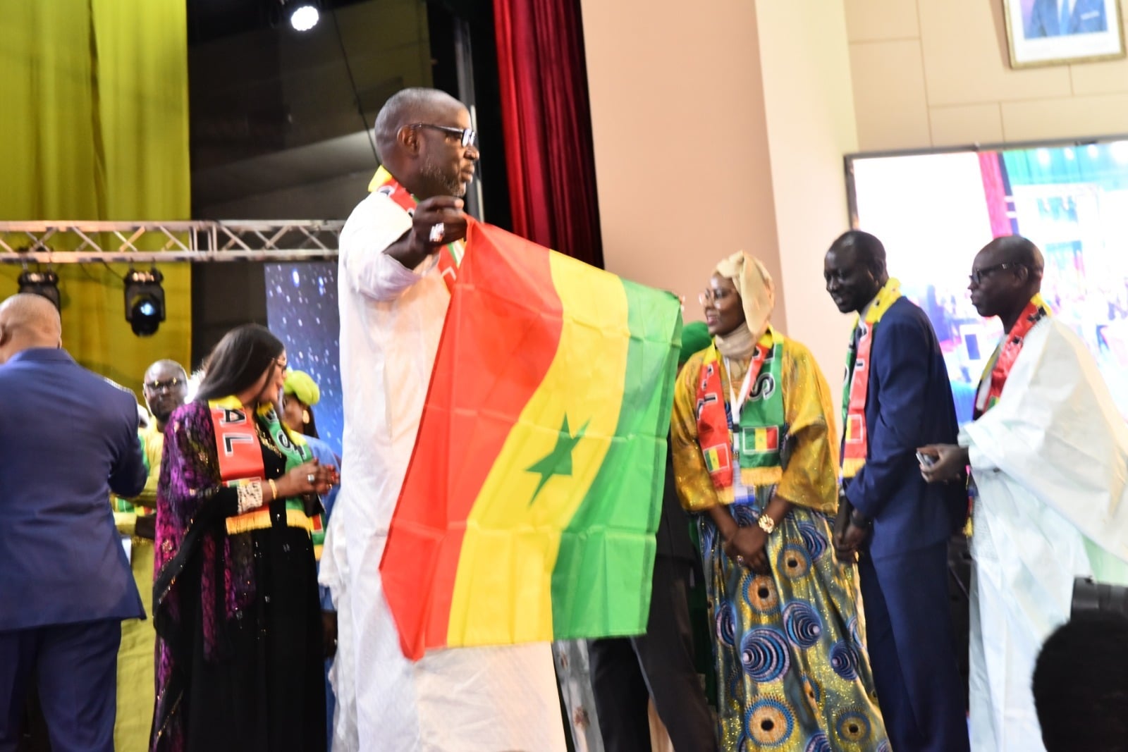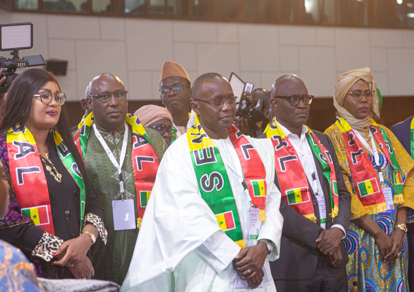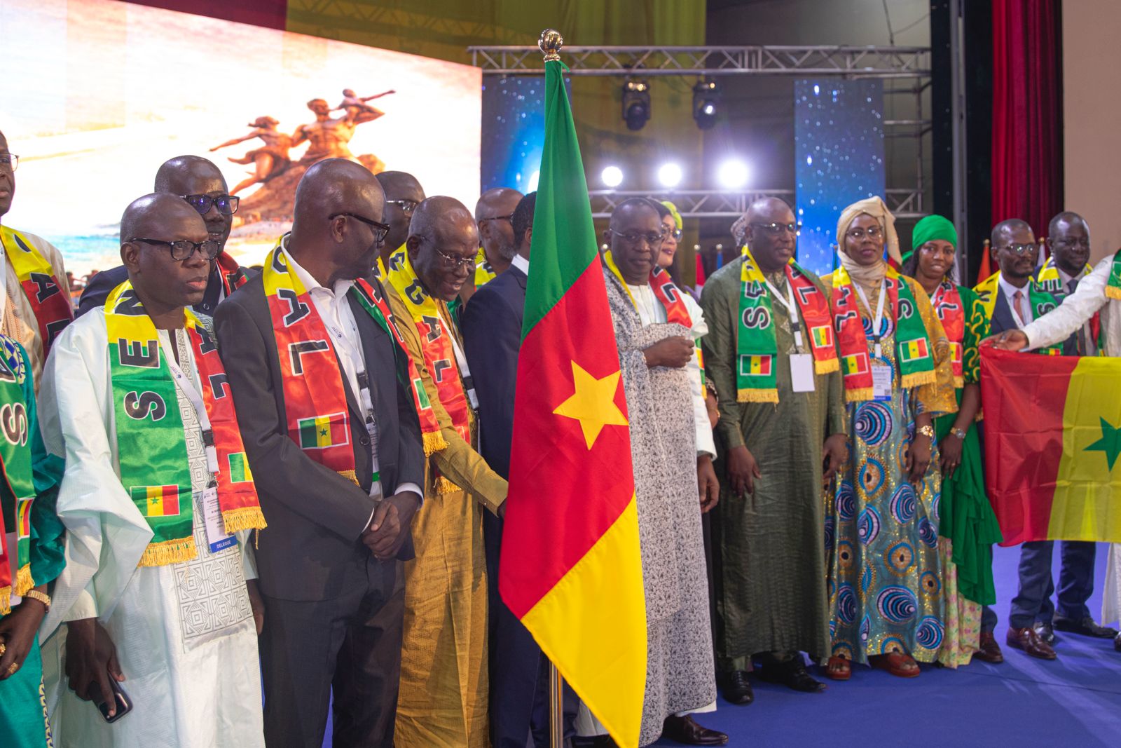 Les membres de la délégation sénégalaise avec une écharpe aux couleurs du drapeau national du Sénégal enroulée autour du cou ou étendue exulte. Certains se laissent emportés par les notes musicales. La salle bascule dans une ambiance festive à l’envers des contraintes protocolaires antérieures. Depuis Yaoundé, le Sénégal annonce la couleur du congrès de Dakar.