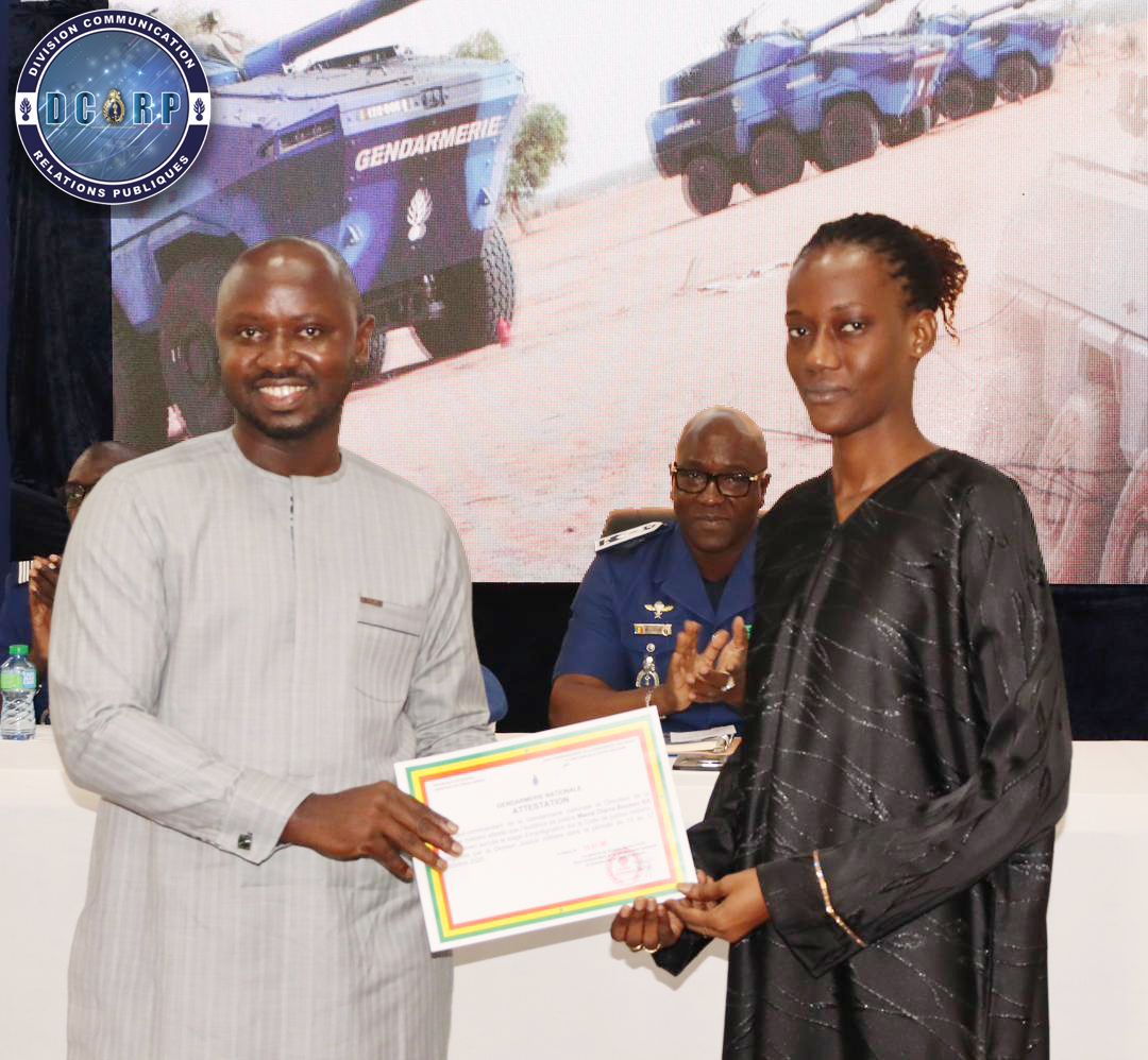 La cérémonie de clôture, tenue le vendredi 17 octobre 2025 à l'amphithéâtre du Haut Commandement de la Gendarmerie nationale, a été présidée par le général de brigade Papa Diouf, haut-commandant en second de la Gendarmerie nationale et sous-directeur de la justice militaire.