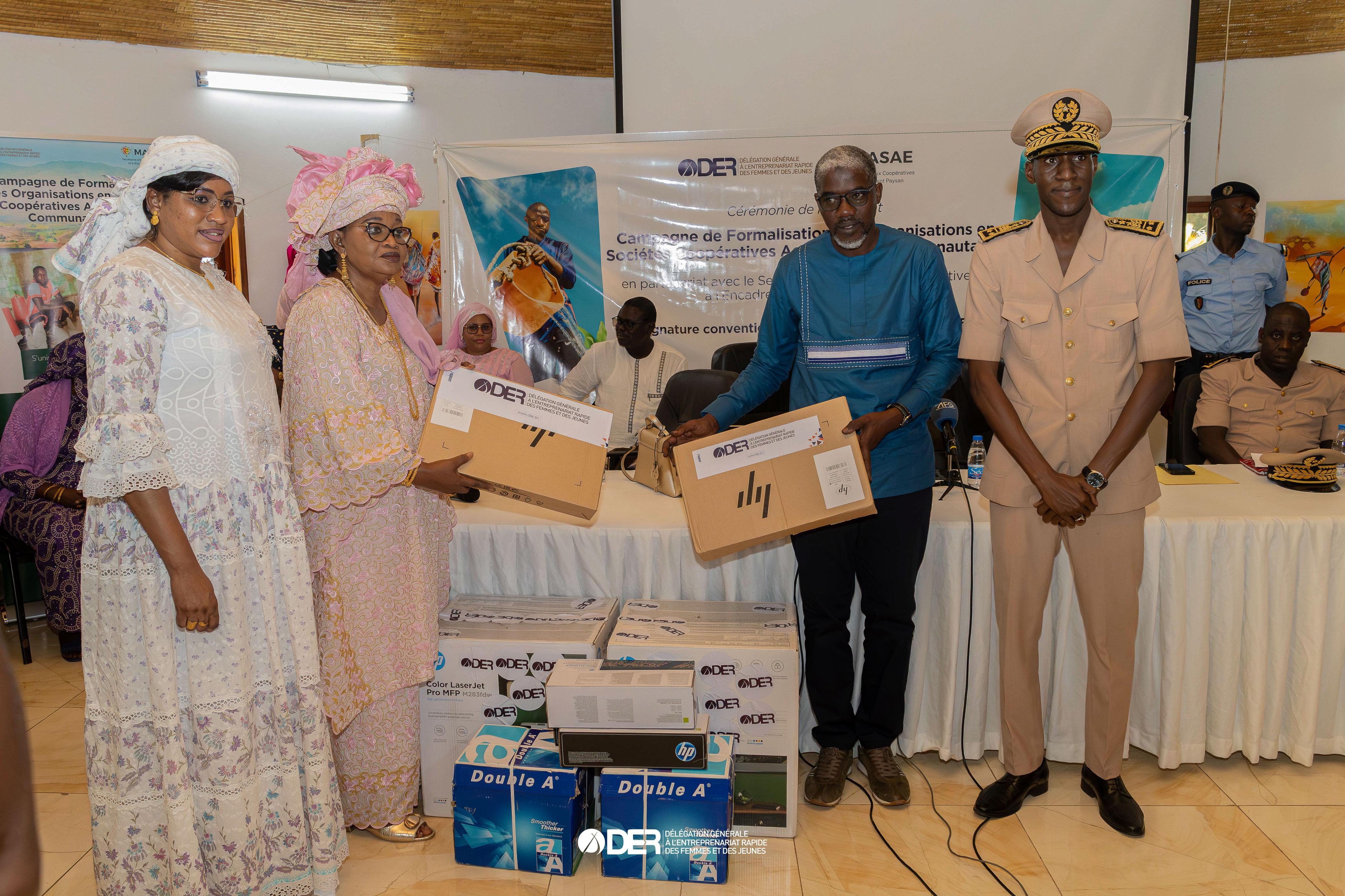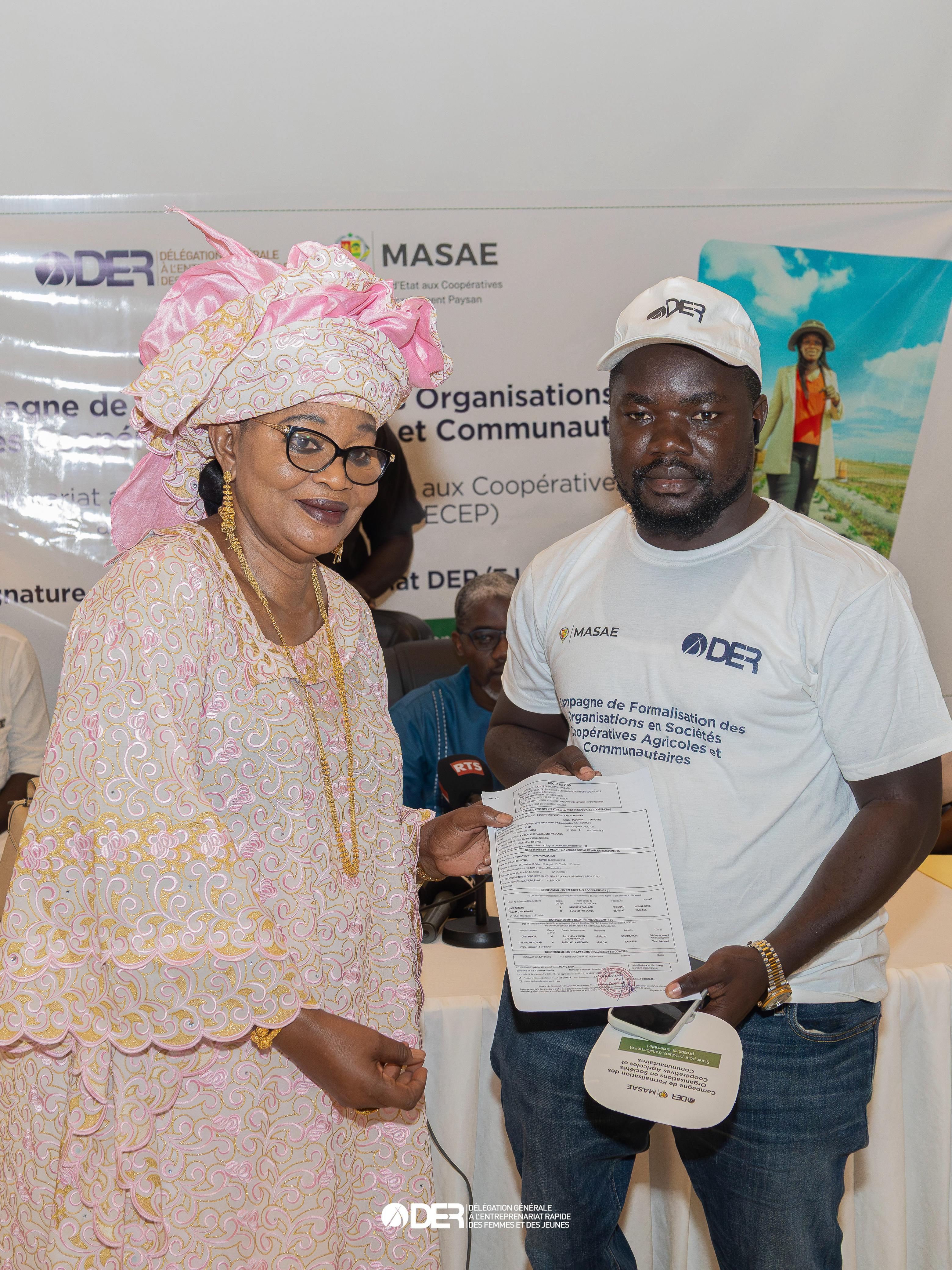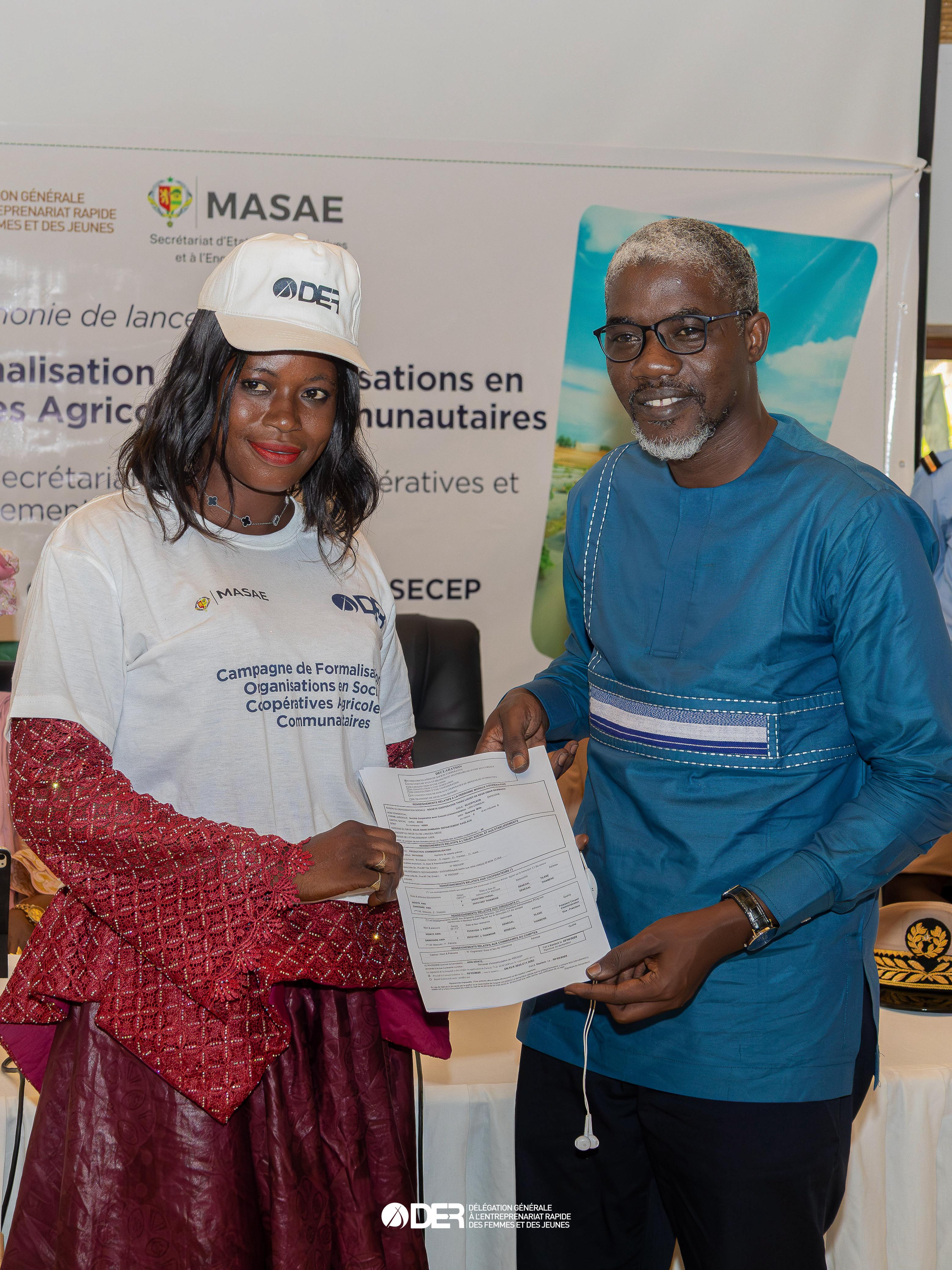 Et d’ajouter : « Le Secrétariat d’Etat aux coopératives, garant de la souveraineté alimentaire, de la promotion des filières ainsi que le Ministère de l’Agriculture. La DER/FJ, promoteur et moteur de l’entrepreneuriat inclusif et vous-mêmes, ont l’obligation de conjuguer leurs efforts pour créer un environnement favorable à l’émergence d’entreprises agricoles formalisées, viables et compétitives ».