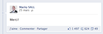 Eh Oui, il a fallu à Macky Sall exactement 323 jours de présence sur Facebook pour rassembler 30.000 sympathisants avec qui il partage son quotidien depuis le 03 Janvier 2011.