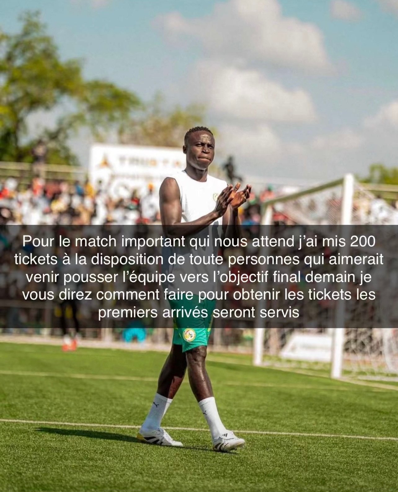 Son initiative a immédiatement trouvé écho dans la Tanière. Krépin Diatta a salué « un geste énorme » et a lui aussi décidé de contribuer. « Moi aussi, j’ai prévu d’acheter beaucoup de billets et de les remettre. Plusieurs joueurs vont faire pareil. Pour ce match crucial, j’ai mis 200 tickets à la disposition de ceux qui souhaitent venir pousser l’équipe vers la victoire. Les premiers arrivés seront servis », a confié l'arrière droit des Lions.