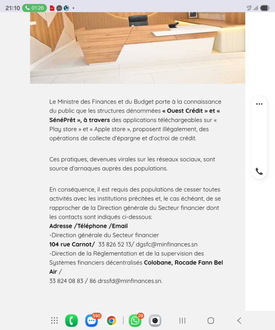 Les gendarmes ont reçu une information sur un réseau basé à la cité Apix, vers Tivaouane-Peulh. Il opérait sous le nom de "Leaders BusinessCo". Les escrocs utilisaient deux applications mobiles : Lekol Credit et Credit Levier, disponibles sur Play Store et Apple Store. Leur mode opératoire était bien rodé. Ils proposaient des prêts de 8 500 F CFA aux personnes dans le besoin. Mais, en réalité, le client ne recevait que 5 500 F CFA. Les 3 000 F CFA restants étaient prélevés comme frais et le remboursement du prêt se faisait en sept jours. Le taux d'intérêt appliqué atteignait 45 %. En cas de retard, des amendes journalières s'ajoutaient à la dette.