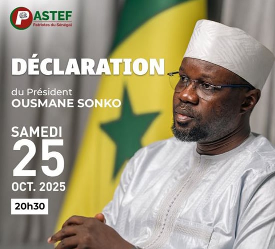 Ousmane Sonko, le premier ministre du Sénégal et Président de Pastef-les Patriotes, va faire une déclaration ce samedi. Il en a fait l’annonce lui-même.
